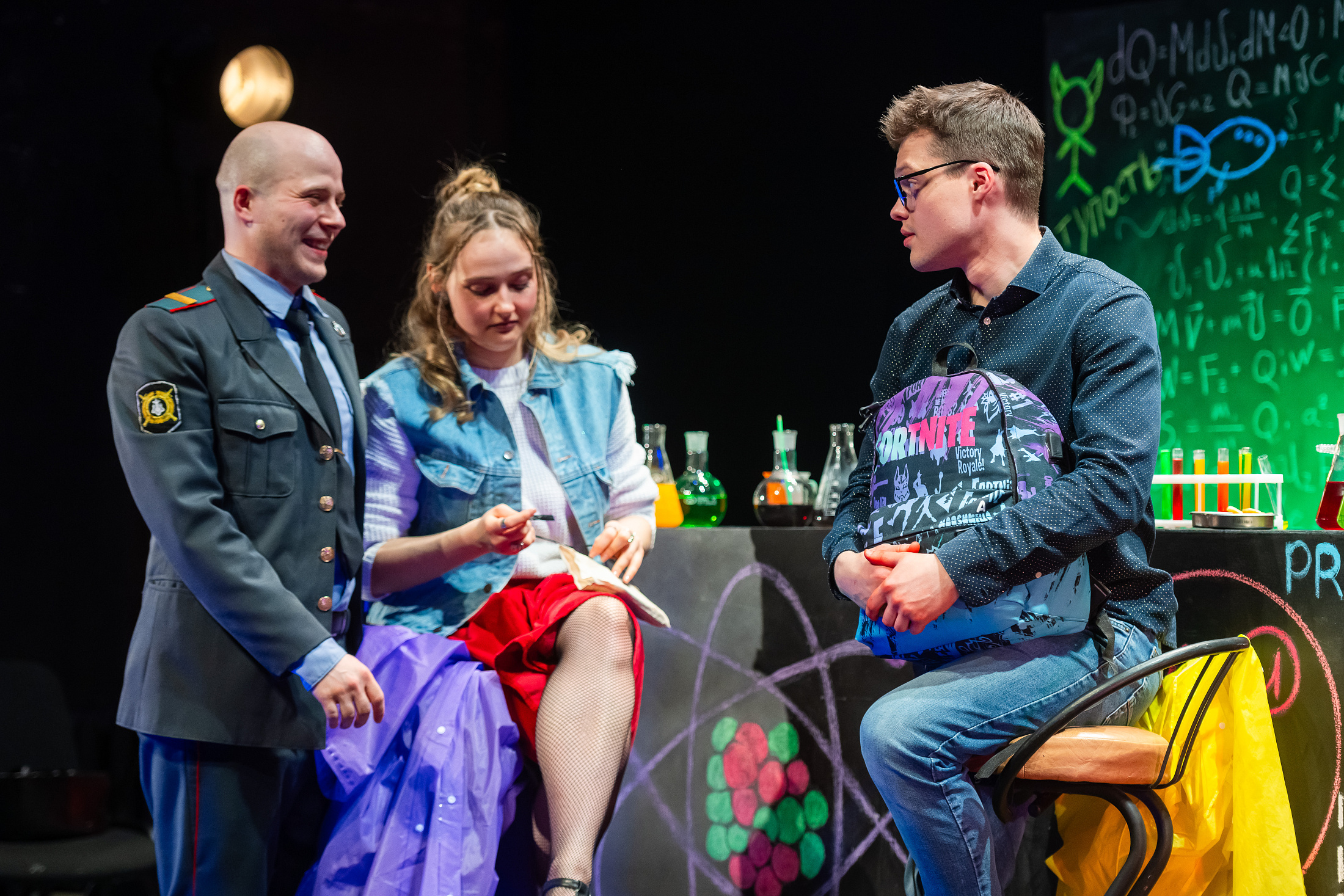 Одного названия уже достаточно, чтобы заинтересоваться этим спектаклем. Герои выпивают в баре и играют в «стикеры». Но спрашивая: «Я реально существую?», вряд ли подозревают, как на их примере зрители убедятся, что квантовая механика – совсем не страшно и не так уж сложно.